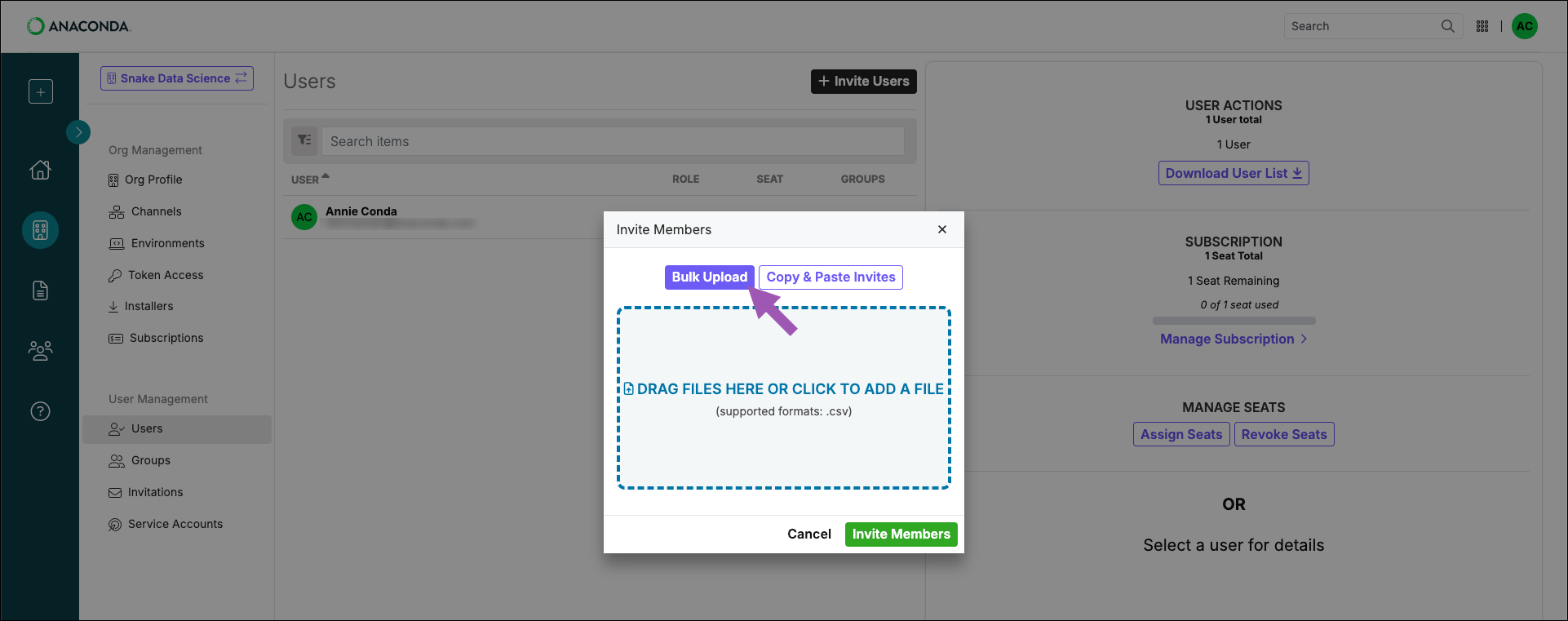 Assigning organization seats