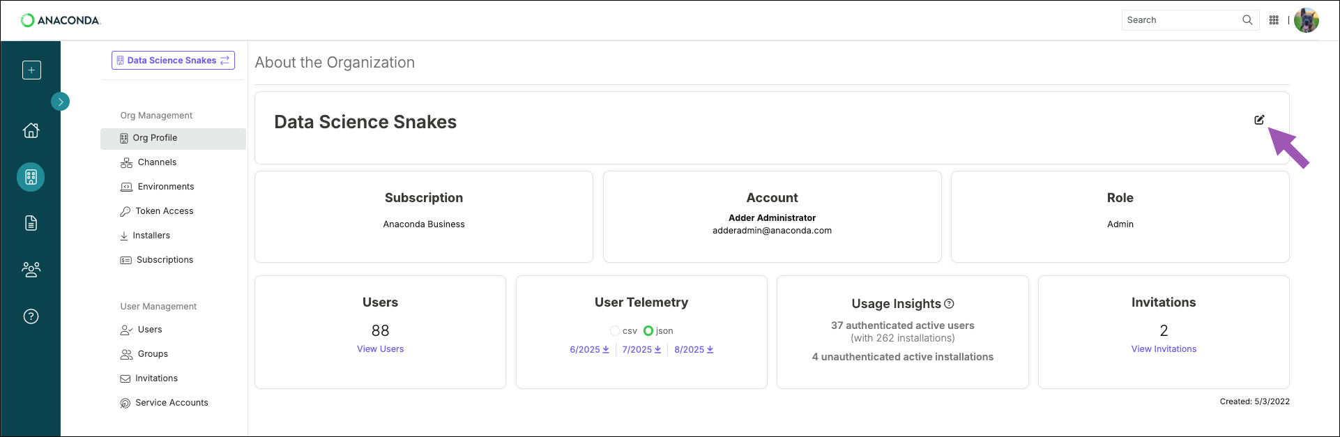 If you’re working with an Anaconda representative, they will create and subscribe your organization for you.