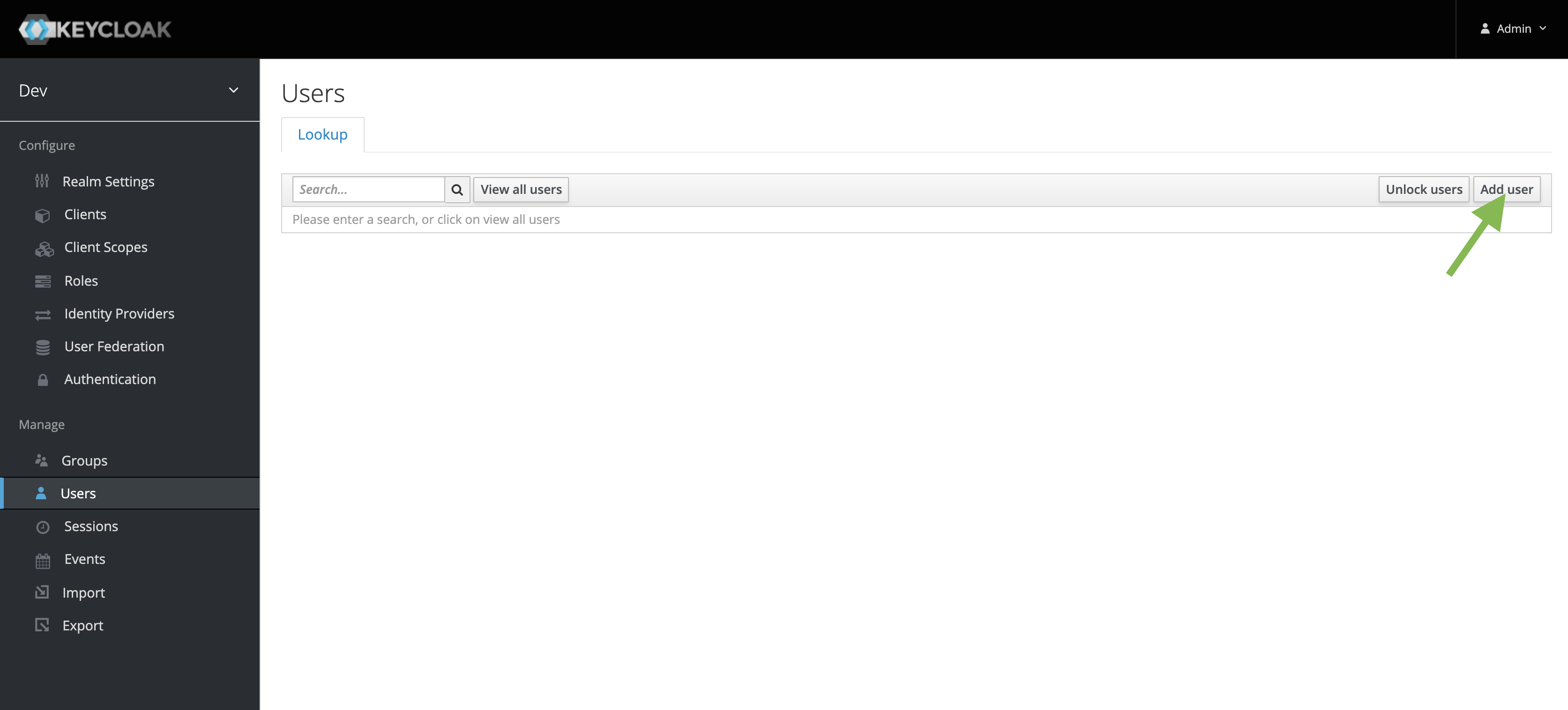 Follow these steps to create a user:- In Keycloak, go to the Users section on the left.