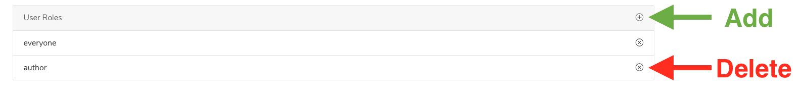 On the User Management screen, you can see the User Roles table listing the current roles. Click on a role to edit it, or click the + icon to add a new role. You can also delete a role by clicking the x icon. This will prompt a window to confirm the deletion.