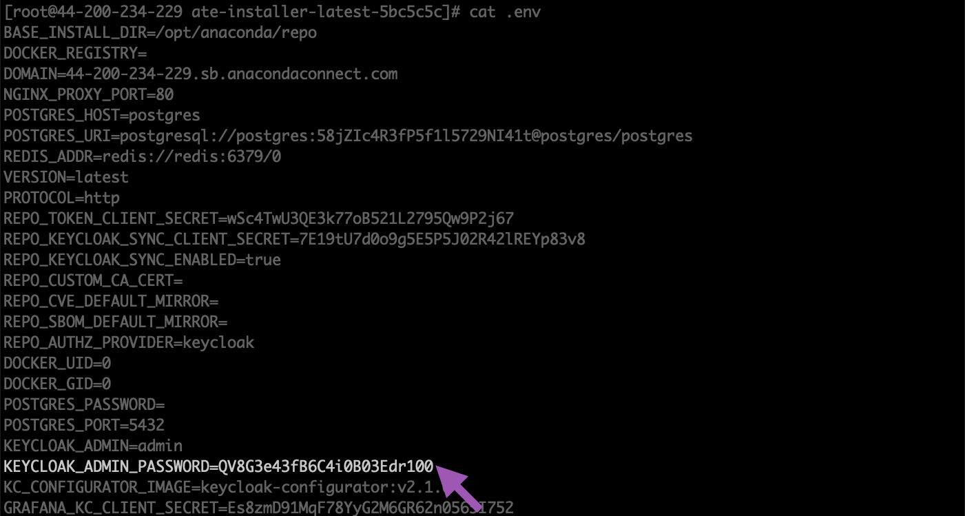 When you update the password for the Keycloak admin account that was created during installation of Package Security Manager, you must also make sure to update theKEYCLOAK_ADMIN_PASSWORD parameter in your .env file.