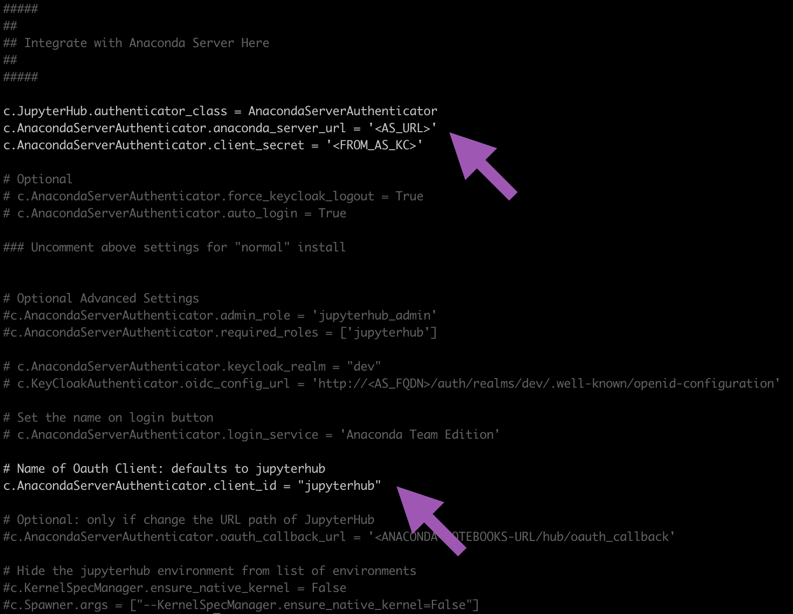 #and update them as follows:Here is an example showing where you can find the lines to comment in and what it will look like when integrated correctly: