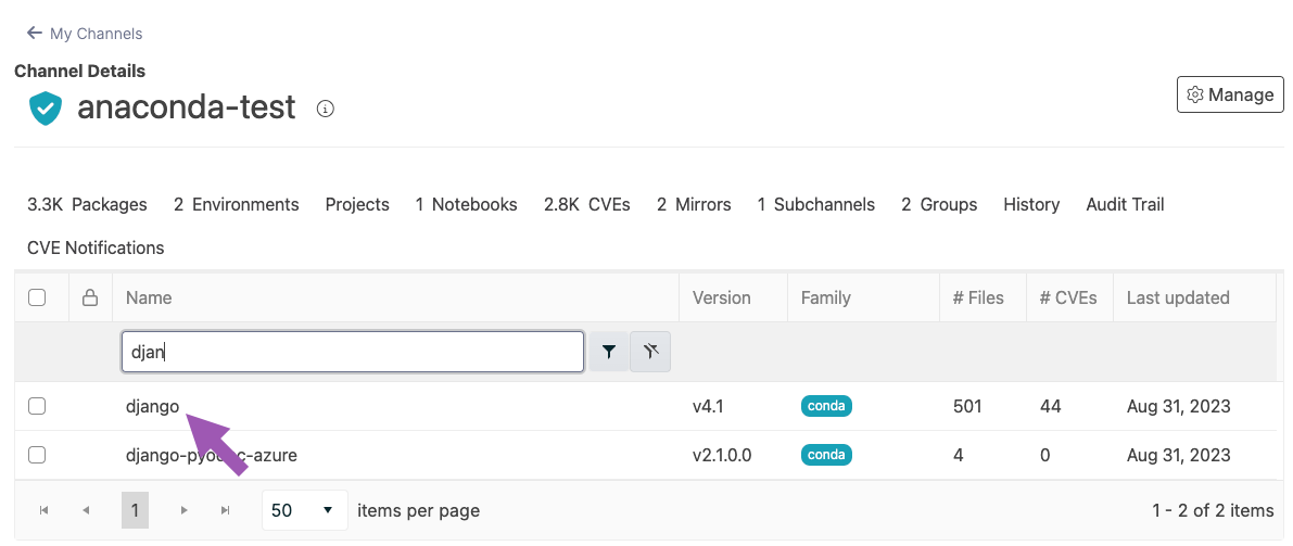 Find the package you need an SBOM for.