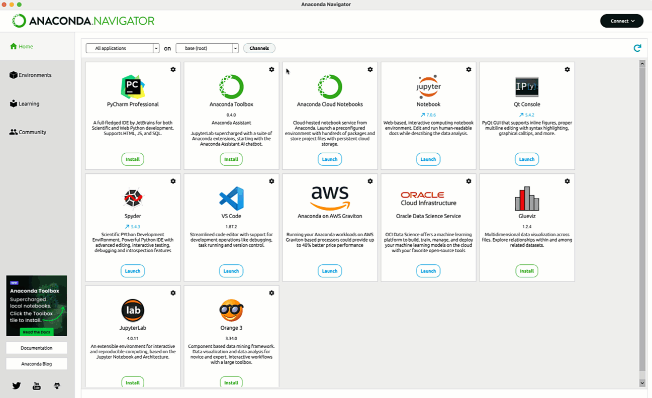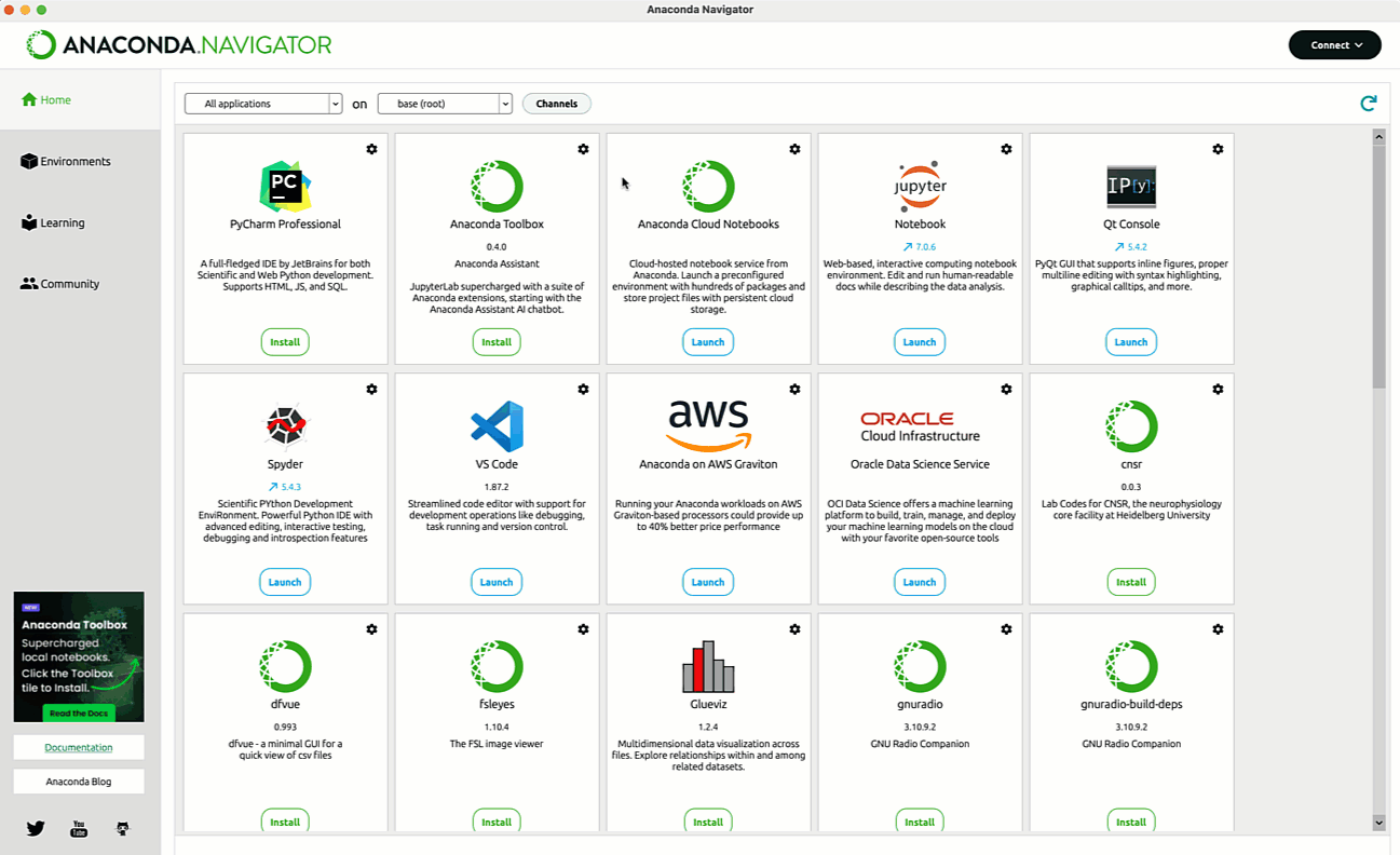 conda looks for, downloads, and installs . Navigator is capable of connecting to a few important conda package hosting providers— Anaconda.org, Anaconda.com, and Anaconda’s enterprise on-prem Package Security Manager—in order to access channels. Navigator can also connect to individual channels that are privately hosted or saved in your own computer files.